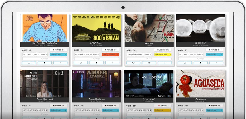 Comptes gratuits pour tous les membres de votre festival, qui peuvent se voir attribuer tous ou certains films, sections et même voter ou tagger des films.